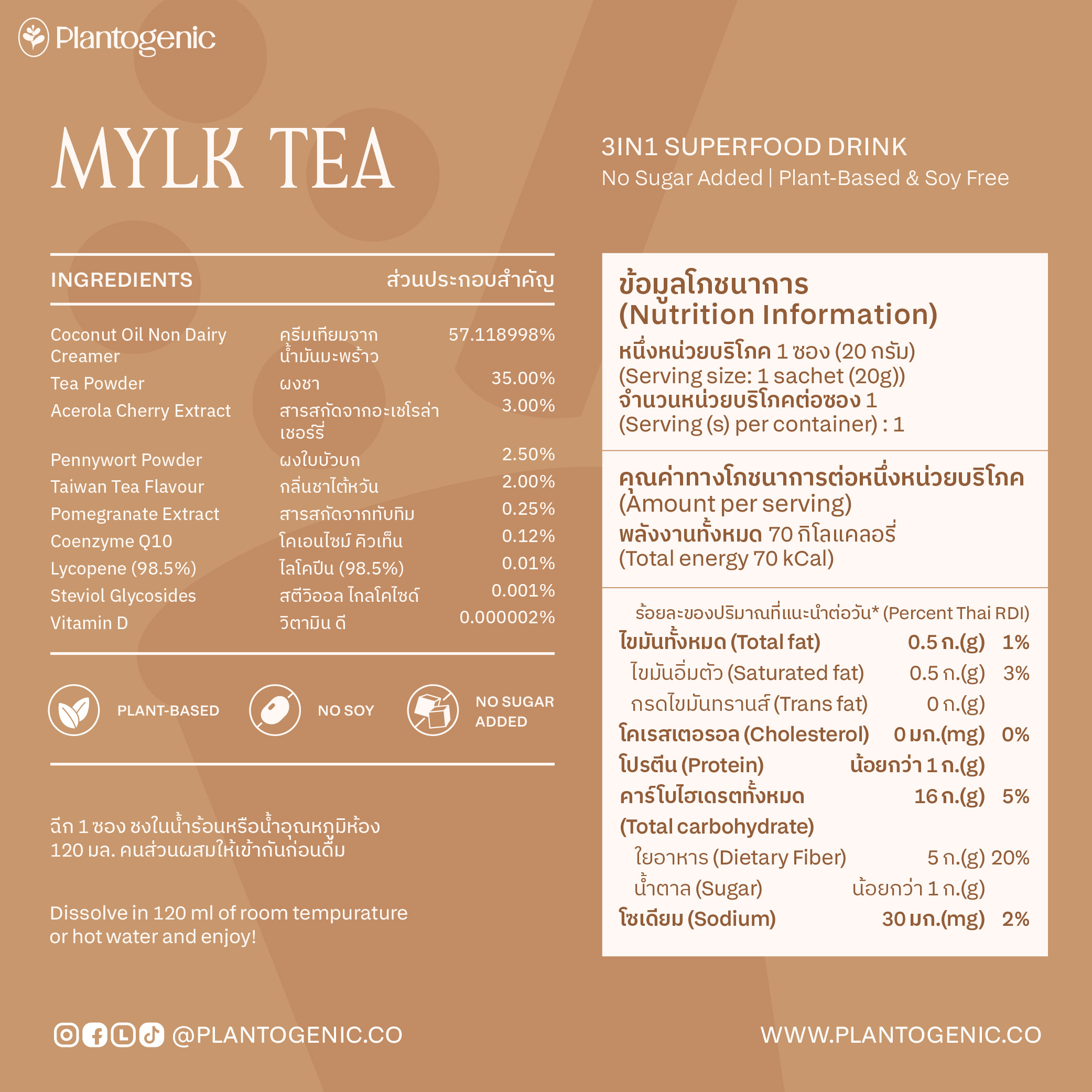 ละลายในน้ําอุ่นหรือน้ําอุณหภูมิห้อง 120 มล. เป็นอันพร้อมดื่ม